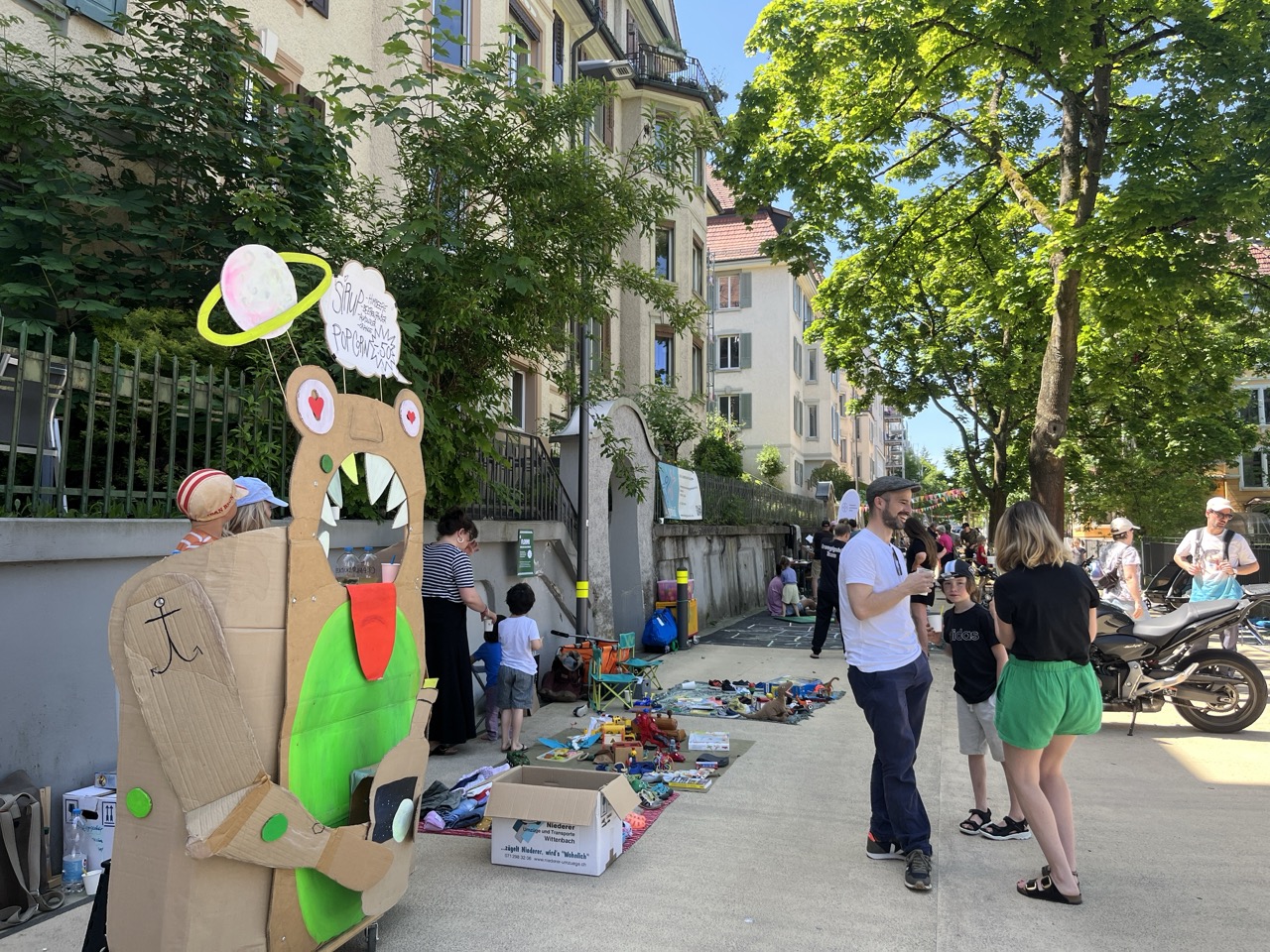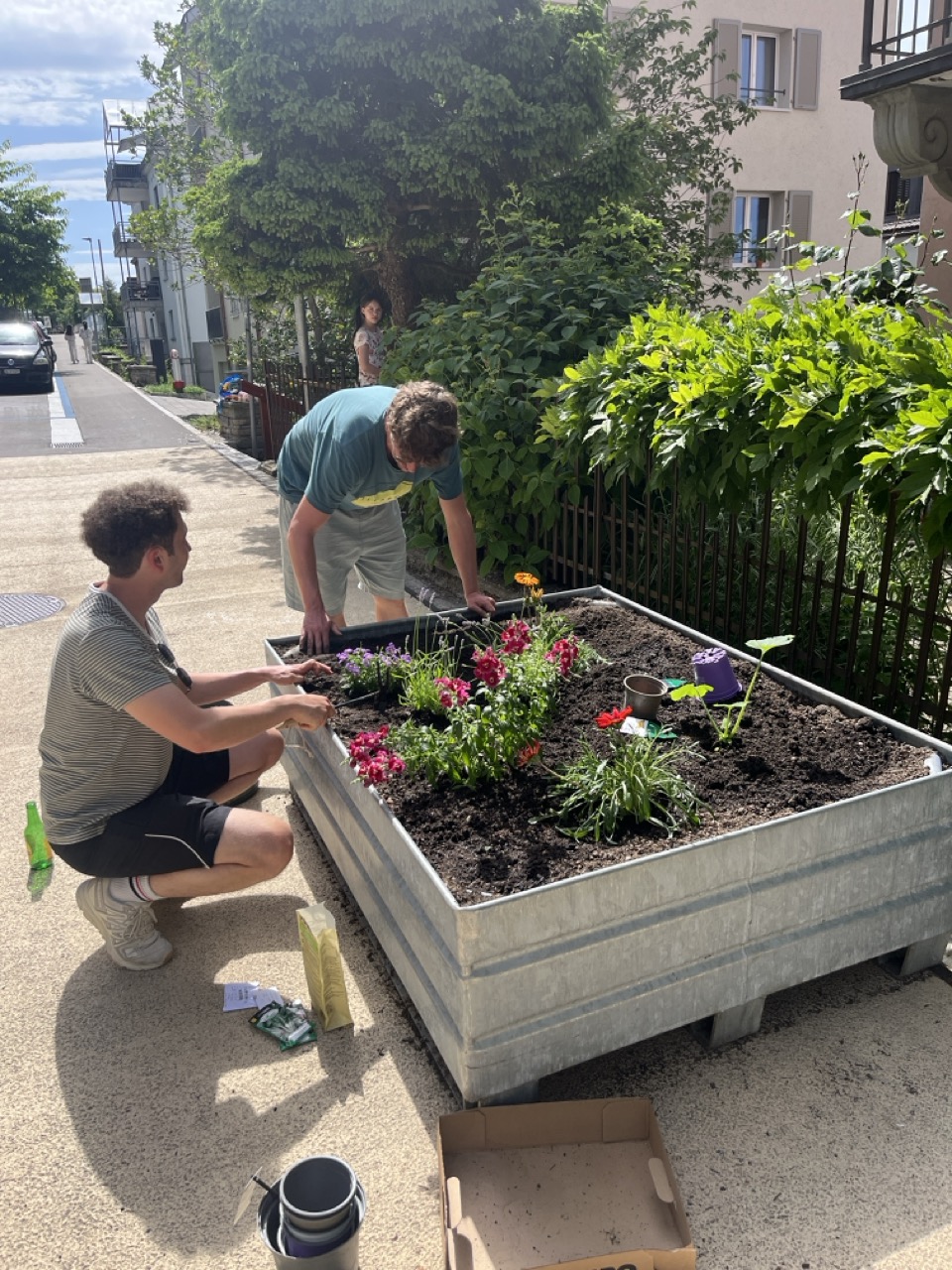 Dank gesperrter Strasse konnten die Kinder frei spielen, unter anderem beim Kinderprogramm des Bewegigshüsli und beim Malen. Ein Highlight war die Einweihung des neuen Pingpong-Tischs, ausserdem veranstalteten wir eine Pflanzaktion für unsere ersten zwei Hochbeete.
