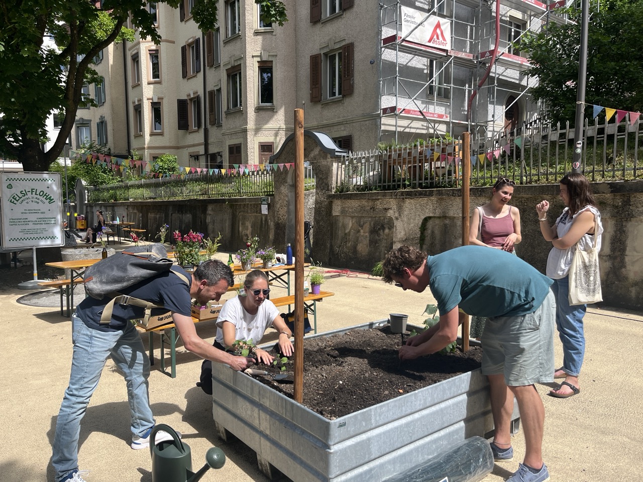 Am 31. Mai wurde die Felsenstrasse zum Treffpunkt fürs ganze Quartier: Pingpong, Pöstele & Pflanzaktion! 👨🌾