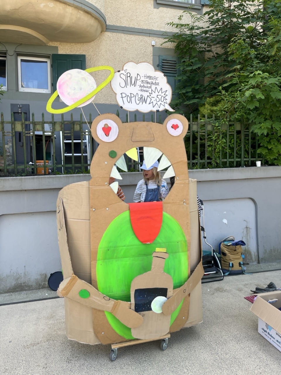 Dank gesperrter Strasse konnten die Kinder frei spielen, unter anderem beim Kinderprogramm des Bewegigshüsli und beim Malen. Ein Highlight war die Einweihung des neuen Pingpong-Tischs, ausserdem veranstalteten wir eine Pflanzaktion für unsere ersten zwei Hochbeete.